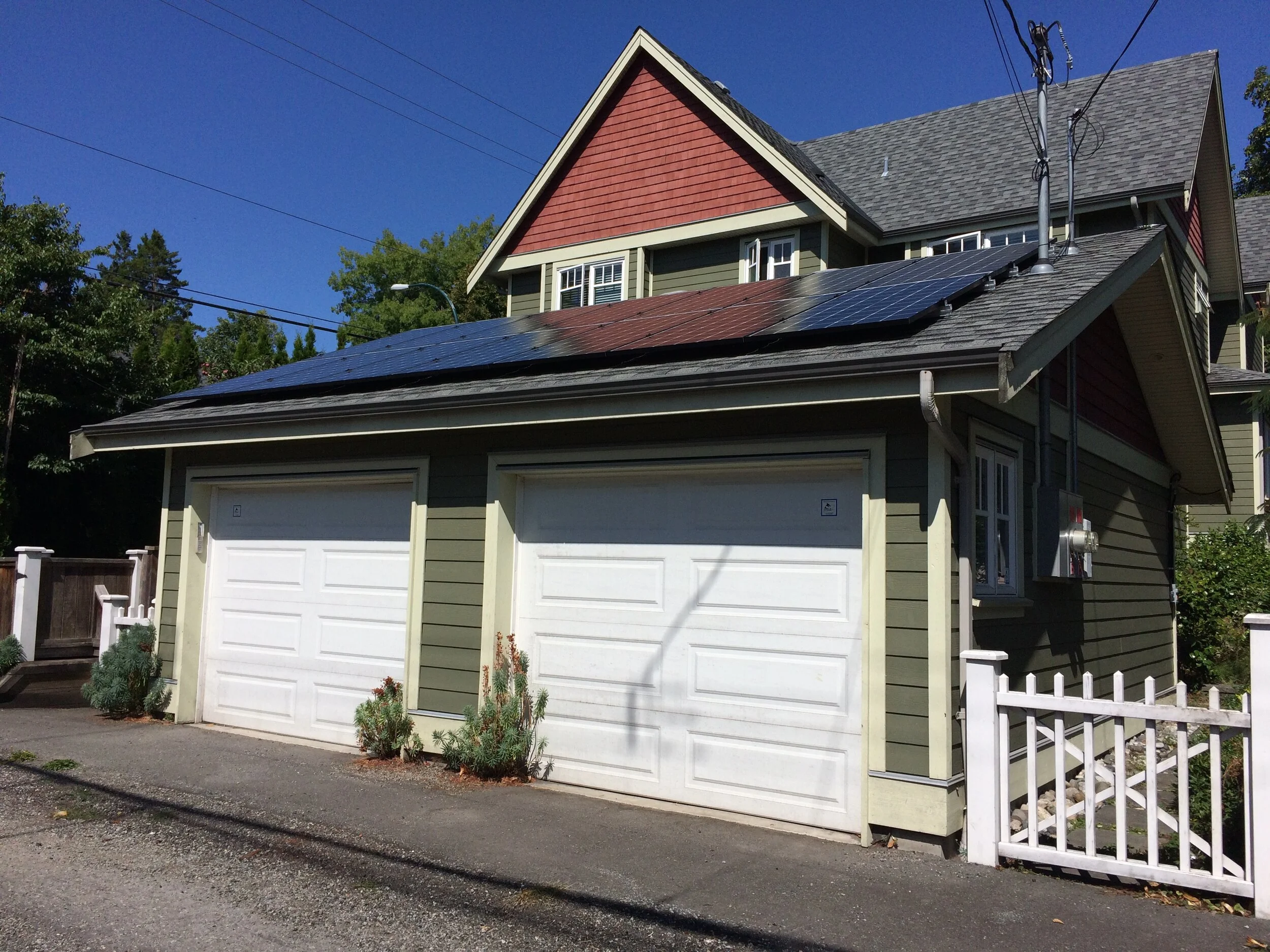 This system serves a duplex where two families live. The homeowners decided to come together and have their entire shared garage covered with solar panels. It is a great example of community in East Vancouver and makes us smile! Incorporating the highest quality solar panels in the world, we expect this solar PV system to be generating for 30 to 40 years.